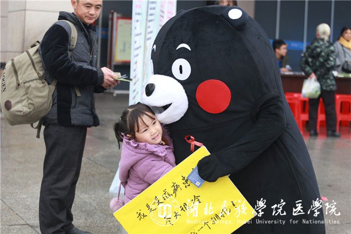 本次活动以"共担防艾责任,共享健康权利,共建健康中国,携手抗‘艾’,你我同行"为主题。活动现场,主办方不仅准备关于艾滋病的主题展板,还安排工作人员向来往路人简单介绍艾滋病相关内容,让广大市民进一步了解艾滋病的来源、预防等各类知识。我院志愿者们在火车站通过分发宣传册、纸巾和避孕套等形式向群众宣传防艾知识,传递非歧视理念。穿着熊本熊套装的工作人员手举宣传牌在人群中穿梭,引导市民在横幅上签名,呼吁大家正确认识艾滋病,树立社会责任意识和正确的性道德观。一位候车的先生在和记者交流过程中谈到,"应该让越来越多的人了解关注艾滋病,有利于整个社会的发展。"还表示会让自己周围的人也加入防艾抗艾的活动中来。