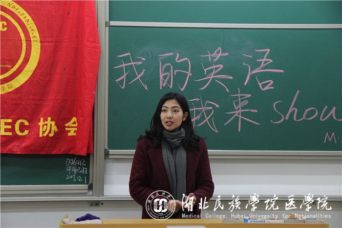 本网讯(记者 毛婷/文 熊慧雯 汪洋/摄)为激发广大学生学习英语的热情,为更多人提供一个尽情挥洒创意、展现英语风采的舞台,12月2日,我院M·EC协会于修远楼5B209教室成功举办以“我的英语我来show”为主题的英语演讲比赛。特邀外国语学院老师曾奇、外籍老师Nash 及Sonam、Sajana两位外国友人担任评委。