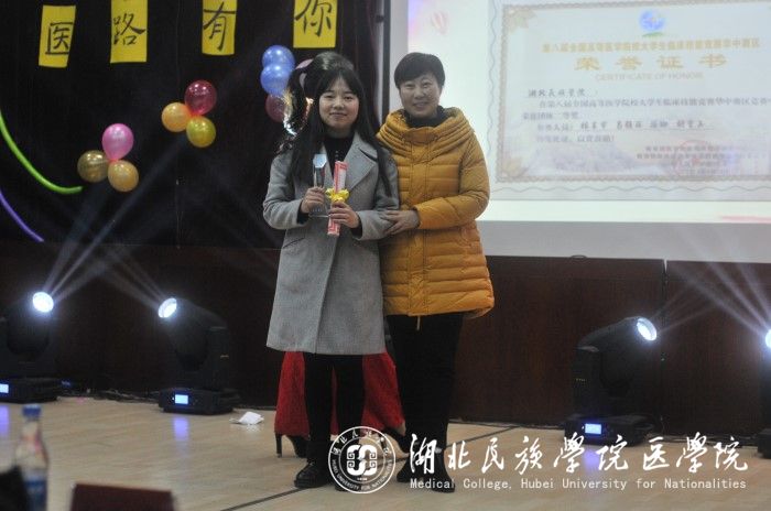 盛典在我院院长刘红的致辞中拉开序幕,刘院长表示,作为医学生的我们要有妙手回春的医学知识和救死扶伤的职业道德,还要提高身体各方面的综合能力,表彰先进,利于指引我们正确学习。接着,党委副书记张蕊宣读表彰文件,授予蒋兴健同学“医德风尚奖”荣誉称号、授予李先兰“自强不息奖”等等。在精彩的歌舞小品交替穿插表演中,刘院长为蒋兴健颁发“医德风尚”奖,蒋兴健同学基于医学生本能救人于危机之际,充分展现医学生应有的医学技能和职业道德,是广大医学生学习的好榜样。一段精彩的口技表演把盛典推向高潮,郜院长为“学习标兵”谢燕妮颁奖。过去一年中,有不仅有突出的个人表现,更涌现大批优秀团队,护理技能大赛团队、临床技能大赛团队、医学院男子篮球队均获得优秀团队荣誉称号。盛典在医学院领导与获奖个人和团队的合照留念中落下帷幕。