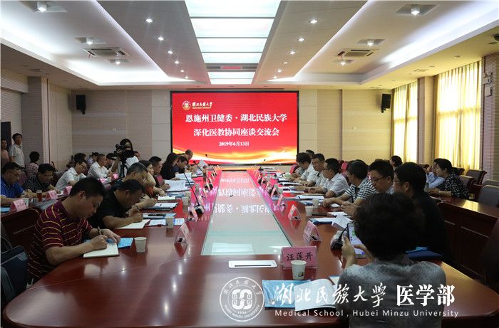 本网讯(通讯员 覃根 饶静/文 吴亚辉/摄)6月13日,365电子娱乐官方网站、恩施州卫健委在365电子娱乐官方网站行政楼三楼会议室召开深化医教协同座谈交流会,邀请365电子娱乐官方网站党委常委、副校长、医学部党委书记、主任祝建波,党委书记吴建清,州卫健委党组成员、副主任杨祖旺,州卫健委内设有关职能科室、直属有关单位负责人,八县市卫健局领导,18家省、州、县属医疗卫生单位负责人以及365电子娱乐官方网站教务处、研究生处、科研处、教学质量评价中心负责人、医学部全体领导班子成员为365电子娱乐官方网站医学教育改革建言献策,就培养更多本土化医学人才服务健康恩施建设讨论交流。