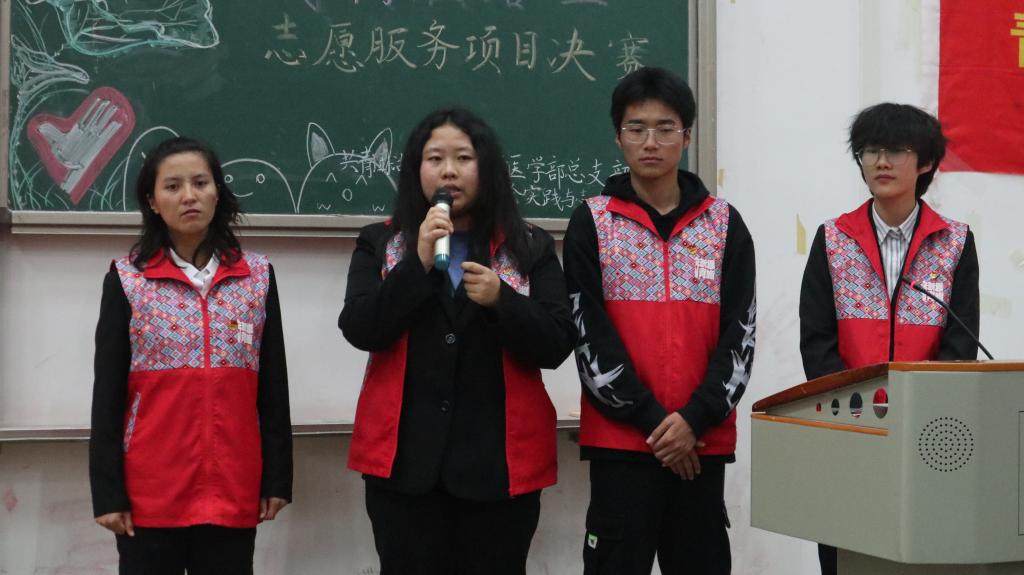 (本网讯 通讯员 袁子涵 许旖蕾/文 摄影 李湘 李东 曾凡轩/摄)为进一步弘扬志愿服务精神,宣传志愿服务理念,引导大学生在服务社会的实践中受教育、长才干、做贡献,5月28日,医学部在修远楼5B404教室联合开展第一届志愿服务项目大赛。此次活动由医学部团总支社会实践与志愿者工作部及医学部青年志愿者协会主办。恩施义工协会发起人向波,副会长汪娜,恩施州残友之声志愿帮扶协会会长严明君,医学部党委书记黄晓波,音乐舞蹈学院团总支书记单家迪,医学部学生工作办公室老师袁琳、陈建萍应邀出席并担任评委。现场观众200余人。