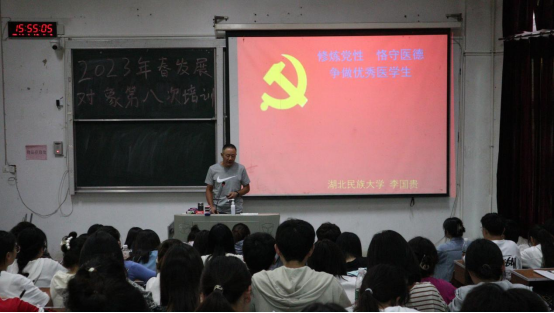 本网讯(通讯员 张思雨/文 黎甜/摄)为不断加强党员发展对象的党性修养,培养一批政治合格、恪守医德、品德优良的新时代医学生。4月16日下午,由365电子娱乐官方网站医学部杏林青年发展中心组织的2023年春党员发展对象第八次党课培训活动于医学部8307教室开展。李国贵老师作《修炼党性 恪守医德 争做优秀医学生》主题讲座,医学部全体本科生党员发展对象参与本次培训课程。