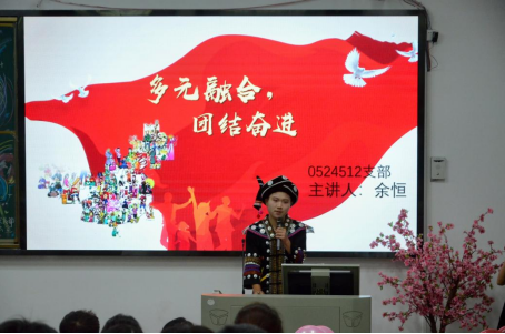 0524512支部带来的《多元融合,团结奋进》,以大一新生视角,从才艺风采、民族万花筒和大学生活三个方面,讲述了该支部的优秀文化背景和强大精神内核,深深了打动现场观众和评委。