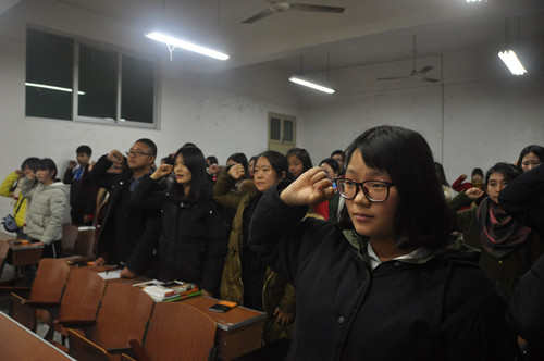 活动在庄严的团歌中拉开序幕,一个三分钟的视频让同学们认识了团徽的组成及意义。接着,彭弥老师围绕“共青团的发展史”、“如何做一名合格的共青团员”以及“学团章”三个方面向同学们讲解。彭弥老师谈到,作为一名合格的团员我们应该满足以下四点要求:一、要有坚定不移的共产主义理想和信念;二、要有优秀的品质和道德;三、要有品学兼优的素质和扎实的文化基础;四、要成为学生中的表率和楷模。此外,彭弥老师还强调,团员必须清楚中国共青团的基本任务。在舆论事件发生时,要勇于站出来为正义发声。
