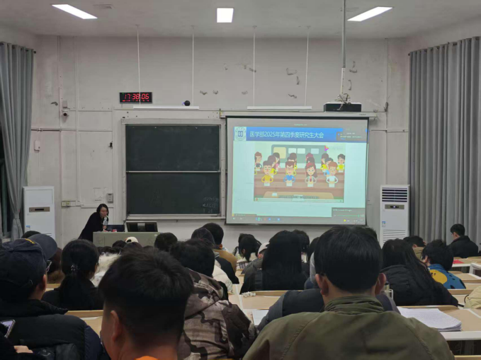会上,梁运老师首先强调了消防安全在校园学习、生活及未来医疗工作中的极端重要性。他结合高校特点及医学实验室等特定环境,系统讲解了火灾的常见成因、预防措施、初期火灾扑救方法以及火场疏散逃生的关键要点和注意事项。梁老师要求全体研究生必须克服麻痹思想,时刻保持警惕,严格遵守学校及实验室的各项安全管理规定,主动排查身边隐患,共同维护安全稳定的校园环境。