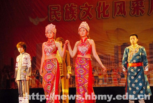 (民族文化风采月活动中土家姊妹花展示土家族服装)