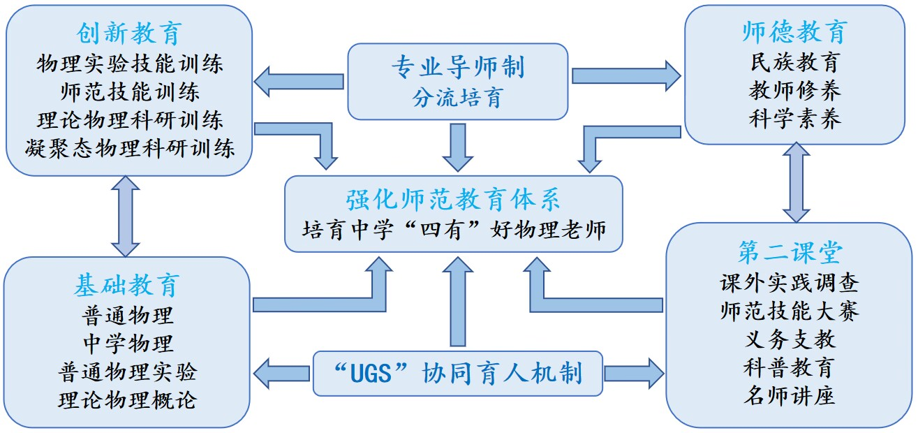 拥有校级物理学实验教学示范中心和物理师范技能实训部,开设近代物理实验、普通物理实验、中学物理教学法实验。校外拥有44个稳定的师范生实践教学基地。