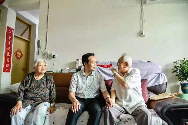 在1949年前入党老党员、离休干部赵友森家,党委书记向前进与老人亲切地拉家常,听老人讲述战争年代参加革命的珍贵记忆,仔细询问身体状况、生活情况,同时对老人曾为学校的发展付出的不懈努力表示感谢,祝福老人健康长寿。