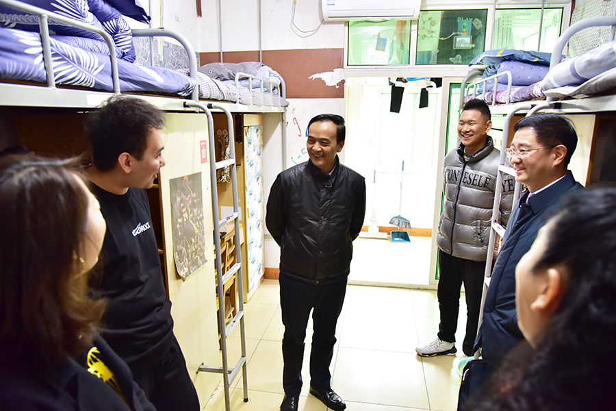 6日下午,向前进一行参观了博学片区外国语学院“寓”见“悦”享“一站式”学生社区活动空间,走访了部分学生寝室。“你的家乡是哪里?在学校习不习惯?”“你对学校有哪些建议?”在博学七栋,向前进亲切询问预科同学的个人情况,详细了解大家的学习、生活情况,叮嘱他们多与辅导员和老师沟通交流,勉励他们以积极的心态和良好的面貌适应学校生活。