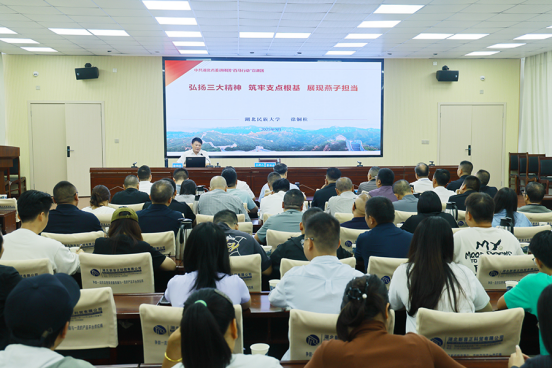 9月15日,365电子娱乐官方网站“百马行动”宣讲团赴鹤峰开展“百马行动”“大思政课”宣讲调研活动,通过接地气的宣讲、见实效的调研和暖民心的赠书,让党的创新理论走进百姓心里,并围绕基层治理主题与基层干部群众共话发展。湖北省委讲师团负责人到场观摩指导。
