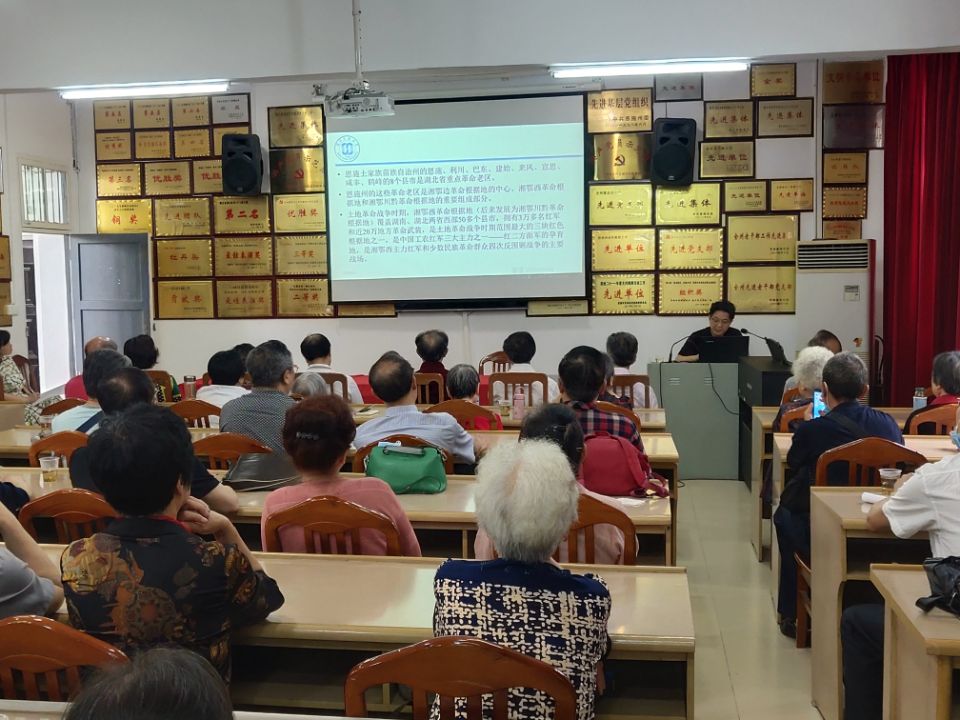 洪雁以《湘鄂西革命根据地创建、发展及历史贡献》为题,用鲜活的本土红色资源,讲好本土党史故事,通过贺龙、周逸群、段德昌等老一辈无产阶级革命家的英雄事迹,追忆峥嵘岁月,缅怀革命先烈,深刻阐述开展党史学习教育的重大意义,阐明了作为共产党员应该肩负的光荣使命,要不忘初心,坚定理想信念,讲座引发了党员热烈反响。