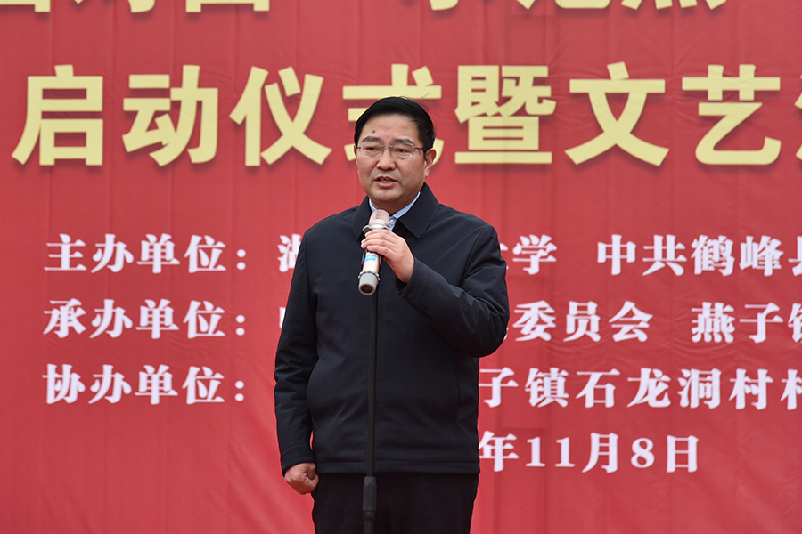本网讯(记者 廖希为 张倩雯)11月8日,我校在“理论热点面对面”示范点鹤峰县燕子镇开展“五送”惠民活动,我校党委副书记邓磊出席活动并讲话。鹤峰县委副书记、县长王兵会见了我校“五送”专家团一行。11月8日下午,“理论热点面对面”示范点“五送”惠民活动启动仪式暨文艺汇演在该镇石龙洞村举行。
