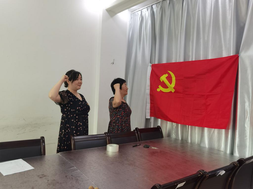 宣誓仪式在庄重严肃的氛围中进行,全体党员们都佩戴党徽,在领誓人李学恩同志的带领下,庄严宣誓。