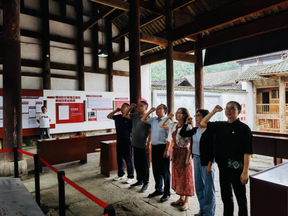 全体党员在中共湘鄂西中央分局十字路会议旧址参观学习。从介绍短片了解到1934年4月10日,贺龙率红三军从咸丰活龙坪前往利川县文斗十字路,在此休整6天并召开了具有重大历史意义的“十字路会议”。参观过程中,大家了解了红军在鄂川边的革命活动,尤其是奇袭龙塘铺税卡、邵家老房子突围战等传奇故事;从“三大纪律六项注意”中感受到红军严的纪律、实的作风、廉的操守;体会到“一条棉被”等故事折射的军民鱼水情。大家一边仔细聆听介绍,一边驻足端详、睹物静思。通过一幅幅老照片、一个个老物件,深入学习了革命先烈艰苦卓绝的奋斗历程,深切感受了革命先烈坚定的理想信念和百折不挠的崇高精神。